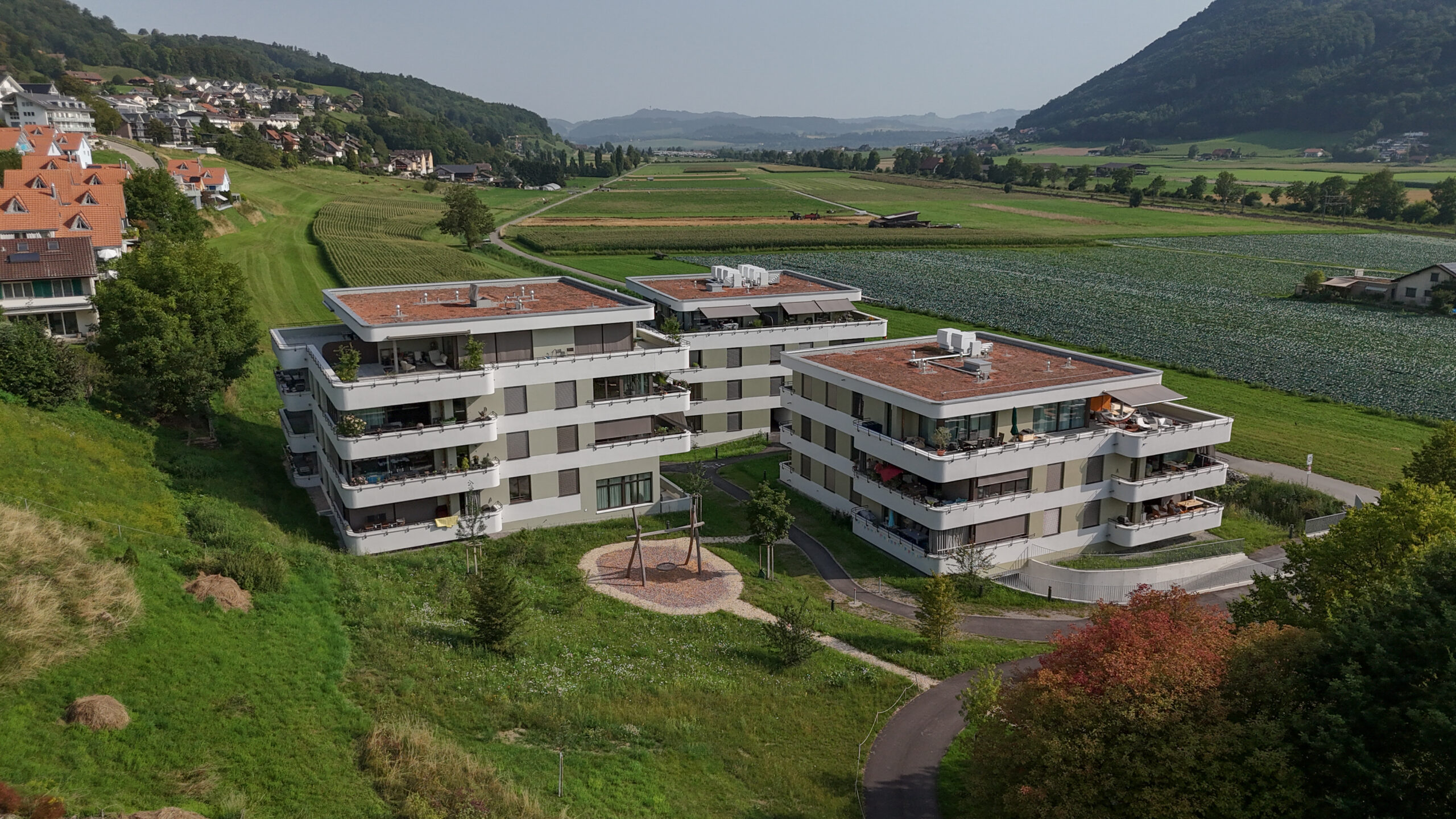 Am Fusse des Längenbergs in der Gemeinde Toffen sind drei Neubauten mit dreissig Eigentumswohnungen und grosszügigen Aussenräumen entstanden. Mit dem Modell der Eigentümergenossenschaft gelangen hier Menschen mit unterschiedlicher Kaufkraft zu finanzierbarem und langfristig kostengünstigem Wohneigentum.
